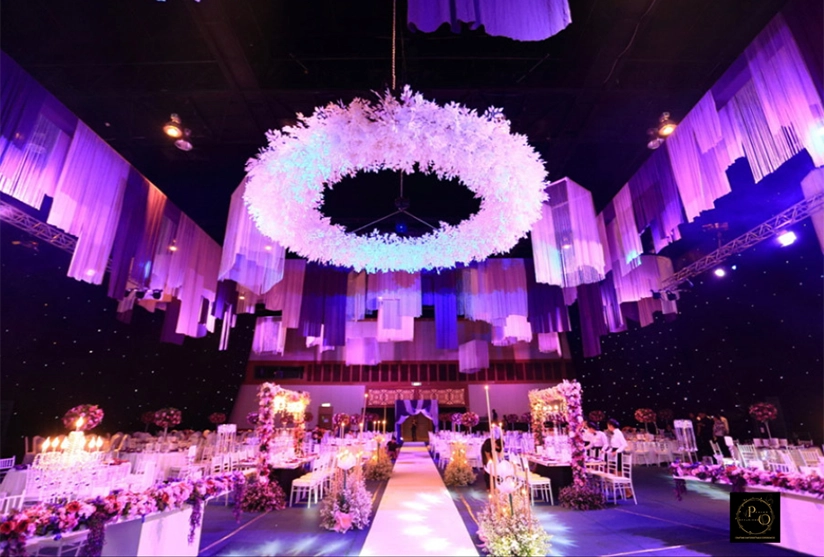 Transforming wedding venue into a dream setting with our elegant wedding decoration service.